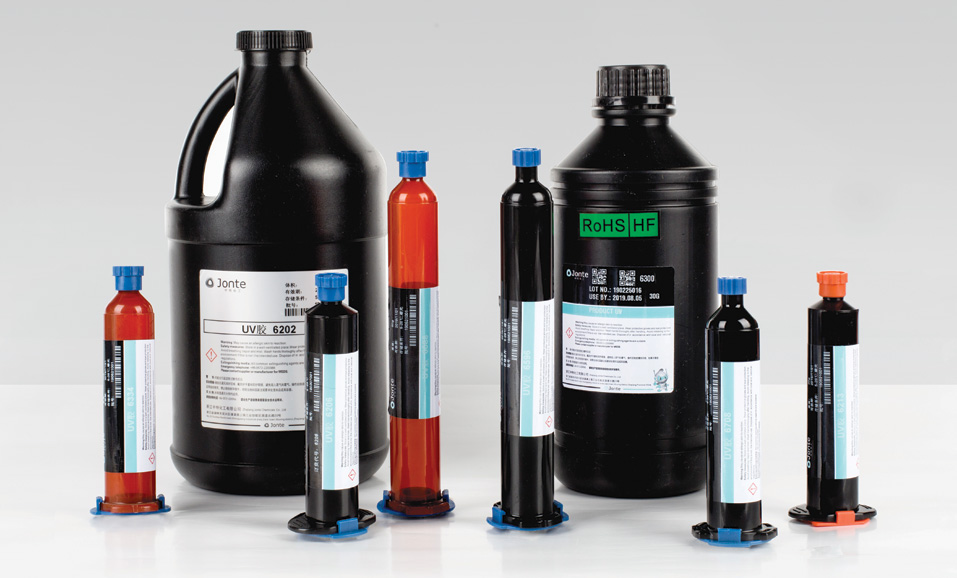 中特UV胶产品对玻璃、塑料、金属有很好的粘接性。主要应用于电子产品组装、粘接、密封、防水等。经过公司技术创新,延伸出UV延迟固化(提高生产效率,解决不能直接照射UV光应用难题)、UV厌氧、UV硅胶、UV PUR、UV湿气固化、UV热固化等前沿产品。目前产品应用于扬声器/受话器、数据线、无线充电、手机线路板、医疗线束、无线耳机等产品领域。